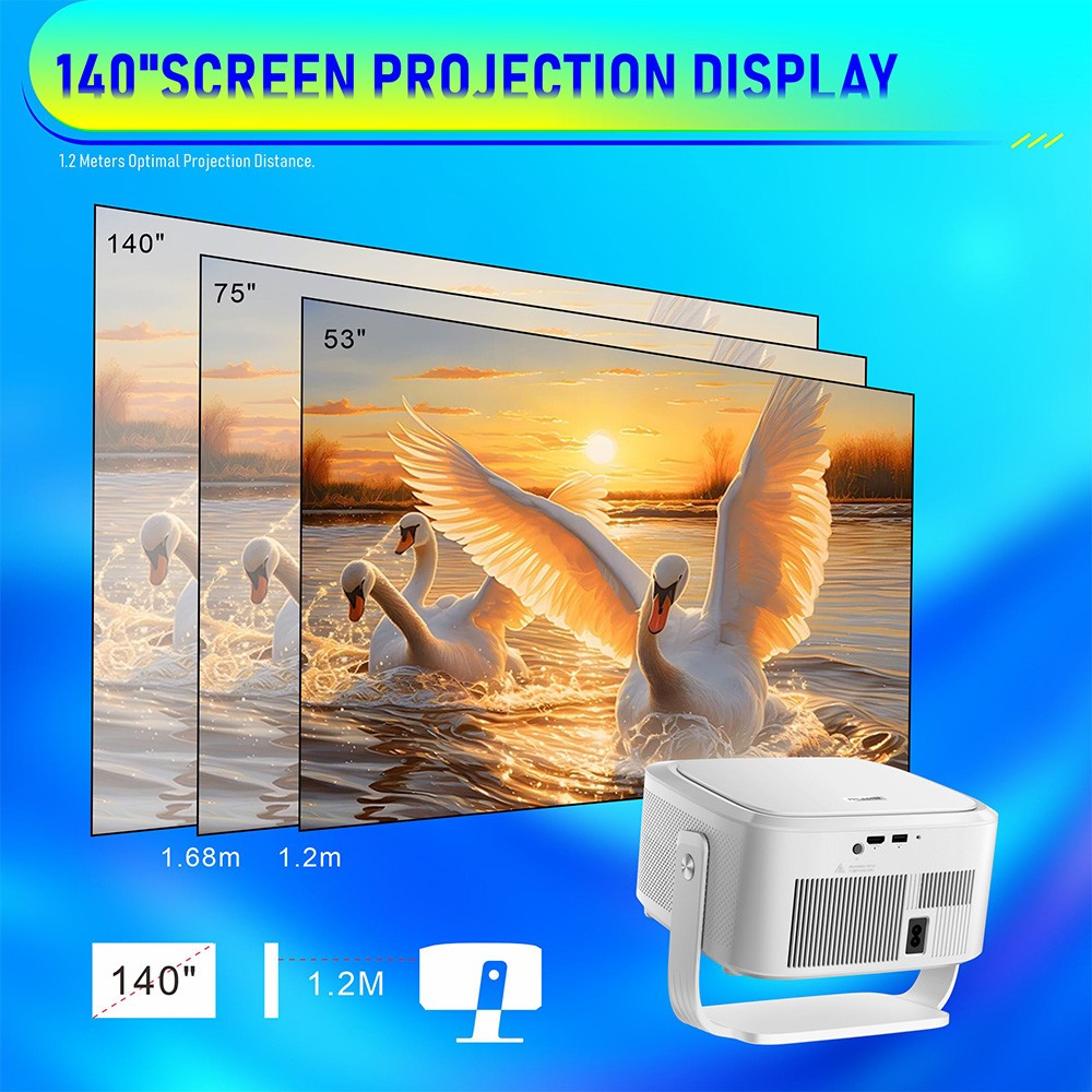 The most loved feature of HY450 Max projector: freely rotate 180° to project on ceiling while lying in bed, or on walls without moving the projector. Ideal for bedroom cinema setup.